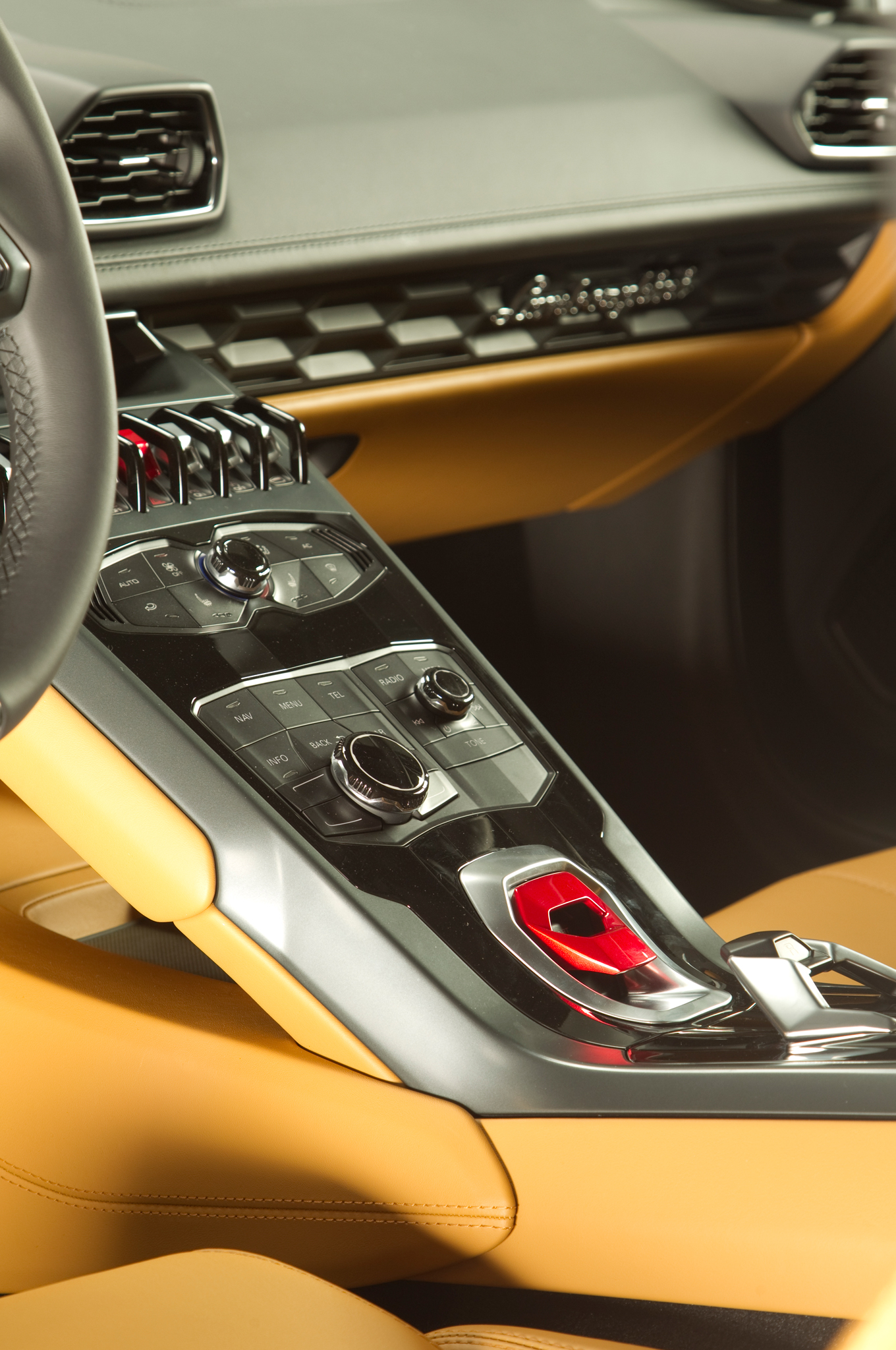 Dışta, lamborghini huracan ledli aydınlatma ekipmanları ile dikkat çekiyor. Fakat temelinde altıgen tasarım yer alıyor. Tıpkı diğer lambo modellerinde olduğu gibi bu araçta rakiplerini kıskandıracak derecede detaylara sahip. Karbon fiber şasinin üzerine temellendirilmiş bu otomobilde altıgen tasarım o kadar benimsenmiş ki aracın kapı kolunda bile bunun izlenimini görmek mümkün. Bu anlayış, aracın her detayında karşınıza çıkıyor. Açıkçası detaylıca incelendiğinde alkışlanması gereken bir otomobil. Bunu sadece dış tasarımı için demiyorum. İçine baktığınızda da yenilenen havalandırma kanallarında, direksiyon simidin de, orta konsolda ve diğer birçok alanda bunu görmek mümkün. Bu arada iç mekan demişken, lamborghini firması bu model ile birlikte özellikle orta konsolda kendini fazlaca gösteren yenilikler yapmış. Aslında bu, huracan modeline özgü desek daha doğru olur. İç mekandan biraz daha fazla detay vereyim. En çok merak edilen alanlardan birisi olan gösterge paneli, bu araçta 12.3 TFT ekran olarak karşımıza çıkıyor. Böylesine çağının üstünde çizgilere sahip araç içinde analog gösterge doğru olmazdı zaten. Bunun dışında orta konsolda yer alan yağ sıcaklığı, akü durumu vb. bilgileri gösteren ekran yer alıyor. Aracın döşemesinde nappa deri ve alcantara kumaşa yer verilmiş. Yani lüks ögelerden de taviz yok demiş, lamborghini.