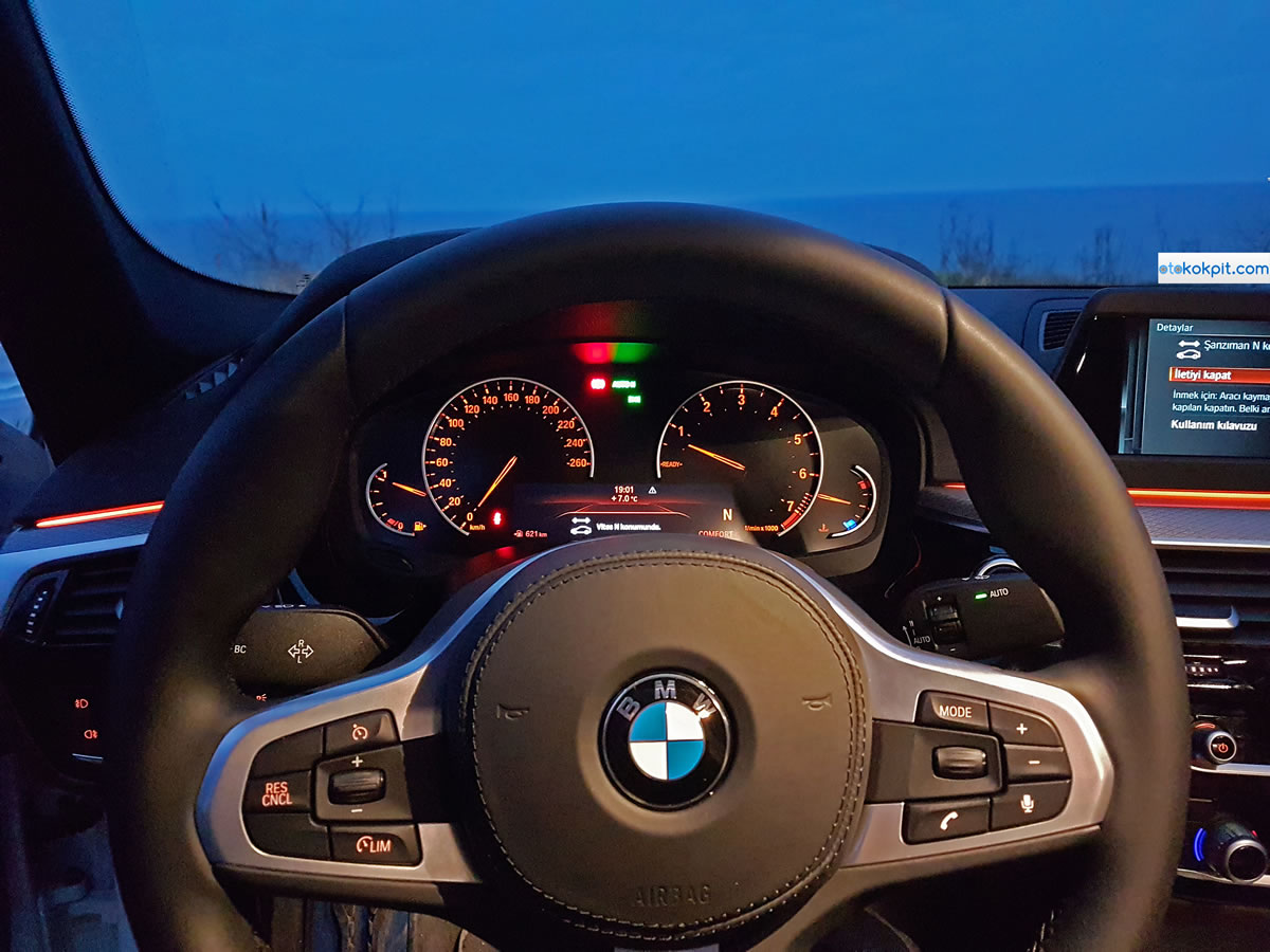 Seri vites geçişleri: 8 ileri ZF otomatik şanzıman, ara geçişlerde çok iyi iş çıkarıyor. G30 vitesleri takır takır atıyor. Geçişlerde sorun yok ama düşüşlerde bazen can sıkıyor. Eksilerde bahsedeceğim.