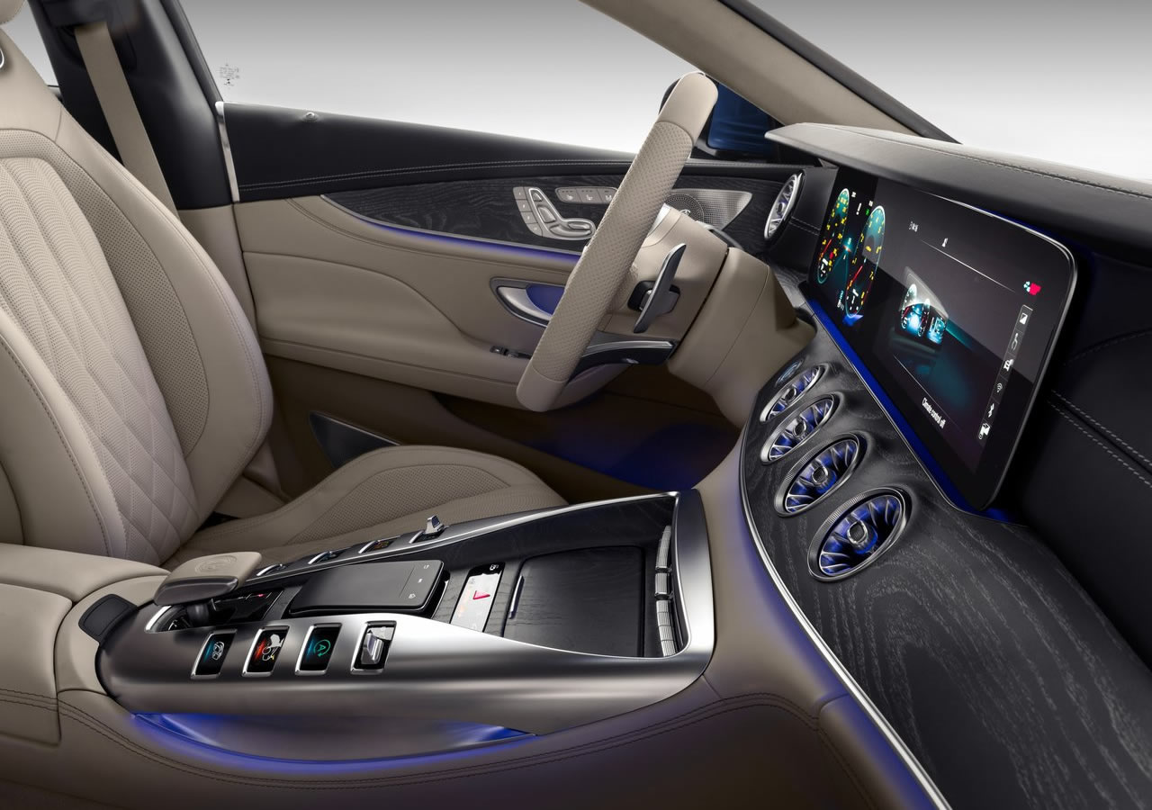 Mercedes-AMG GT63 S 4MATIC+ kaputu altında 4.0 litre V8 turbo benzinli motor yer alıyor ve 639 ps 630 beygir 900 nm tork güç sunuyor. 0-100 km/s hızlanmasını 3.2 saniye de tamamlayan ve 315 km/s hıza ulaşan bu araç, RACE START fonksiyonlu 9 ileri AMG SPEEDSHIFT MCT şanzıman ile geliyor. Tabi bunun bir de GT63 4MATIC+ versiyonu var. O ise aynı motordan 585 ps 800 nm tork güç sunuyor ve 0-100 aralığını 3.4 saniyede tamamlarken 310 km/s son hıza ulaşıyor. 4 kapılı AMG GT63 üyelerinde 395 litre bagaj alanı sunuluyor. Bu alan yatabilen arka koltuklar sayesinde 1324 litreye kadar ulaşabiliyor. Standart olarak gelen AMG RIDE CONTROL+ adlı adaptif havalı süspansiyon sistemi ile çok etkin yol tutuşu sağlanıyor. Ayrıca arka tekerlerde belli açıya kadar dönebiliyor ve sürüş dinamiklerine olumlu etkide bulunuyor. Bunların yanı sıra motor, direksiyon ve süspansiyonlar için farklı sürüş modlar var. Üst versiyon AMG versiyonlarında bulunan sürüş destek sistemleri, konfor elemanları ve diğer opsiyonlarında aynen yer aldığını da belirteyim.