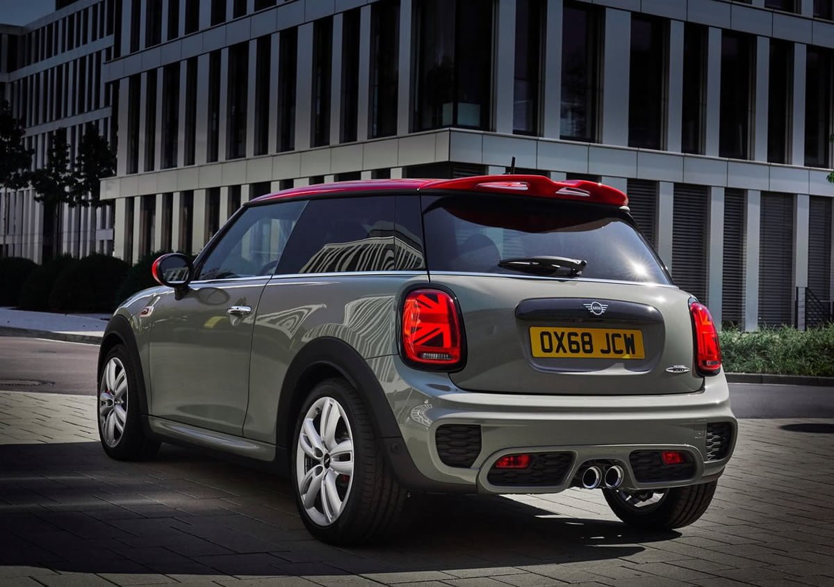 BMW bünyesinde üretilen 2019 Yeni Mini John Cooper Works için dış alandaki farklılıklarına baktığımızda far ve ön ızgara çevresinde parlak siyah hat kullanılmış. Aynı işlem stop grubunun çevresi içinde uygulanmış. 17 inçlik jantlar, led farlar ve Britanya bayrağını vurgulayan Union Jack tasarımlı ledli stopları da unutmamak lazım.