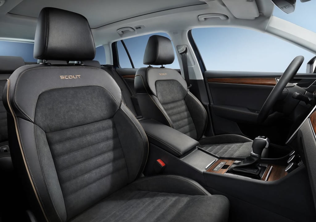 Yaşam alanına geçtiğimizde ise özlediğimiz ahşap trimler 2020 Skoda Superb Scout modelinde sonuna kadar kullanılmış. Orta konsol, kokpit, kapı yanlarında kullanılan bu malzeme araca premium görünüm kazandırırken “Scout” yazılı deri-alcantara kombinli koltuklar altın vuruşu yapmış.