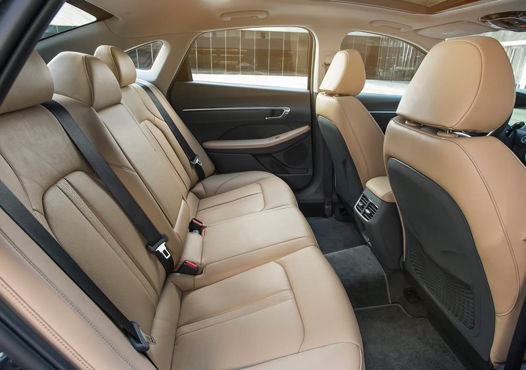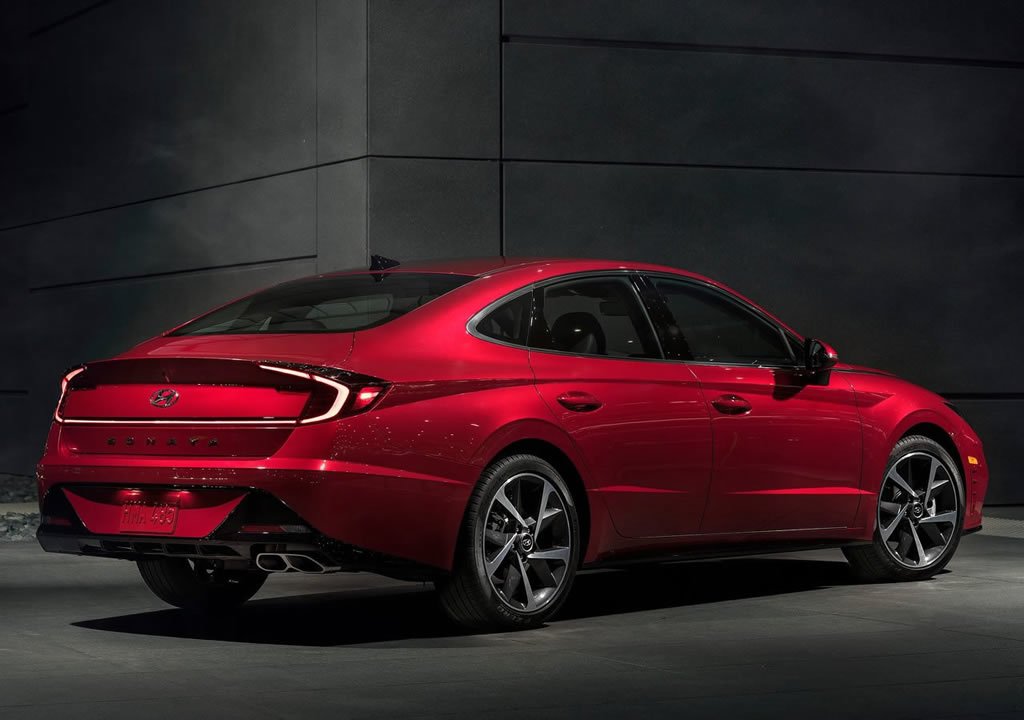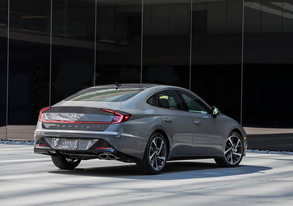 2020 Hyundai Sonata 8 farklı kaporta rengi, led gündüz farları, arka da ledli stop grubu ile karşımıza çıktı. Arka tasarım da Honda Civic Sedan’ı fazlaca andıran yeni Sonata, bilindik Hyundai çizgilerini zorlayan bir araç olarak öne çıkıyor. Coupe formlu tasarımı ile dikkat çeken yeni Sonata 0,27 cd sürtünme katsayısı ile aerodinami anlamında iddialı olduğunu da ortaya koyuyor.