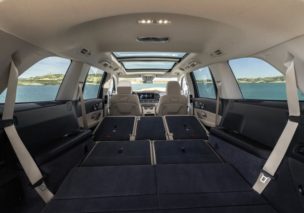 7 koltuklu yeni kasa Mercedes GLS aerodinami açısından da geliştirildi. Önceki GLS’in katsayı değeri 0.35 cd iken yeni versiyonu 0.32 cd. İç hacmi çok geniş olarak üretilen Yeni GLS, ikinci ve üçüncü sıra koltukların kaldırılması sonrasında 2400 litreye kadar bagaj alanı sunuyor. Ayrıca üçüncü sıra koltuklar 1.94 metrelik bireyin bile oturabileceği şekilde tasarlanmış, ayrıca üçüncü sıra koltuklarda bile ısıtma sistemi sunuluyor.