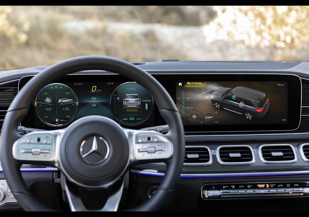 Lüks SUV dünyasının en seçkin modellerinden birisi olarak gelen bu aracın aydınlatma sistemi de S sınıfına yakışır şekilde hazırlanmış. 112 led ampulün bulunduğu MULTIBEAM LED farlar ile 650 metreye kadar etkili gece görüşü sağlanıyor. Yeni GLS’in yaşam alanına baktığımızda ise 12.3 inçlik iki büyük ekran kokpit kısmında bulunuyor. İkinci sıra koltuklarda oturanlar için 11.6 inçlik dokunmatik ekran opsiyon olarak alınabiliyor. Ayrıca 720×240 piksel çözünürlüğüne sahip tam renkli Head-up Display sayesinde ise temel bilgiler sürücüye gösteriliyor.