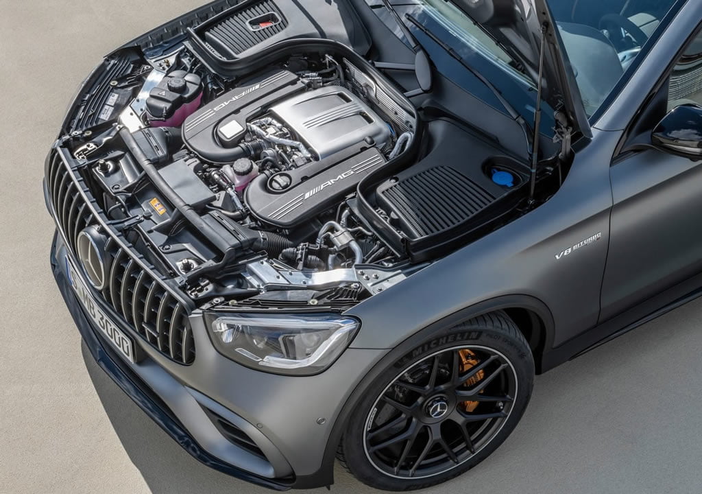 Yeni Mercedes-AMG GLC 63 4.0 litre V8 çift turbo benzinli motoru değiştirmedi ve yine iki farklı güç birimi ile kullanıcısına sunulacak. Standart versiyon 476 ps 469 beygir 650 nm tork güç üretiyor ve 0-100 km/s hızlanmasını 4.0 saniye de tamamlayıp elektronik olarak sınırlandırılmış 250 km/s son hıza ulaşıyor.