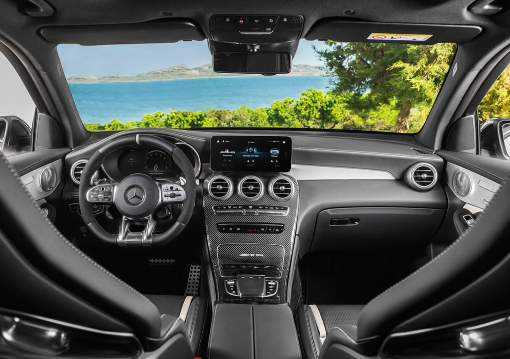 Genel hatlarıyla 2020 yeni Mercedes-AMG GLC63 S özelliklerine de bakalım. GLC63 S için standart olarak 20 inçlik jantlar sunuluyor ve bu jantlara önde 265-45, arkada ise 295-40 ebatlı lastikler eşik ediyor. Opsiyon olarak ise 21 inçlik jantlar alınabiliyor. Yaşam alanında ise 12.3 inçlik dijital gösterge ekranı ve diğer Mercedes modelleri gibi bütünleşik değil de ayrı şekilde konumlandırılmış 10.25 inçlik dokunmatik multimedya ekranı dikkat çekiyor. Dijital ekran Classic, Sport ve Supersport aydınlatma seçeneğiyle sunulduğunu da dipnot olarak geçeyim. Artico spor koltuklar ve karbon fiber iç trimler de iç mekanın diğer ayrıntıları arasında bulunuyor.