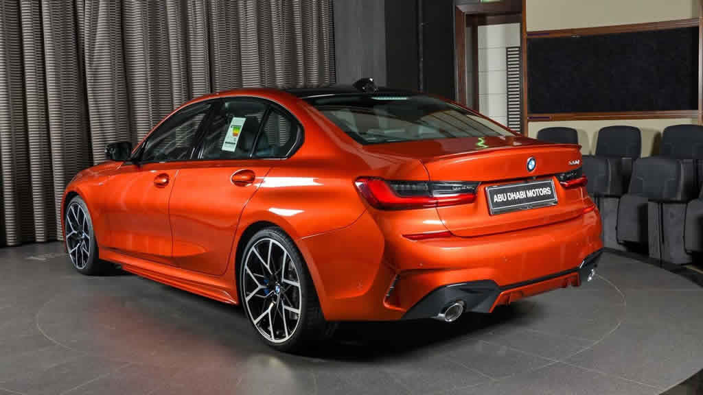 Abu Dabi Motors’un tepeden tırnağa özel olarak sipariş ettiği BMW 330i G20‘nin ilk bakışta rengi dikkatleri üzerine çekiyor. Özel bir turuncu renge sahip olan 330i için komple M Performans body kiti takılmış.