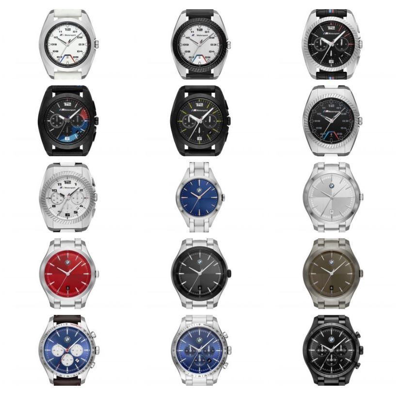 Fossil tarafından üretilen BMW saatleri iki farklı koleksiyon olarak satılacak. İlki BMW Koleksiyonu başlığı altında olup paslanmaz çelik ve deri kordon seçenekleriyle sunulacak. BMW logosunun içine işlendiği oldukça kibar ve abartısız tasarımlı saatler sunulacak.