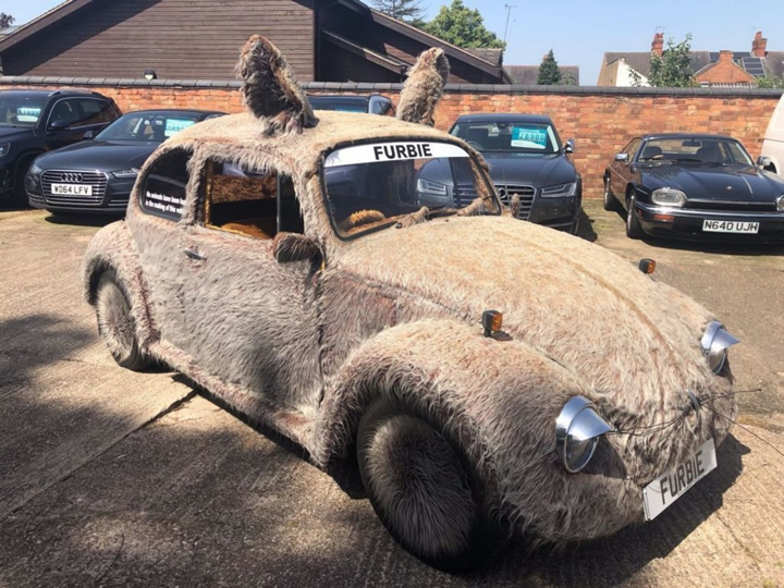 İngiltere de bir galeri tarafından satışa çıkarılan Furbie VW Beetle en ince detayına kadar tüylü ve sevimli karaktere büründürülmüş. Doğasında zaten bir sevimlilik olan bu aracın egzoz çıkışları değiştirilmiş. Tepesine kulaklar ve arkasına da kurma kolu eklenmiş. Bu kadarıyla yetinilmemiş ve iç mekanı da aynı konsept üzerine değiştirilmiş. Aslında bu kısmı abartmışlar. Direksiyon simidine varana kadar uygulama yapılması saçma olmuş. Yine de ortaya ilginç bir araç çıkmış.