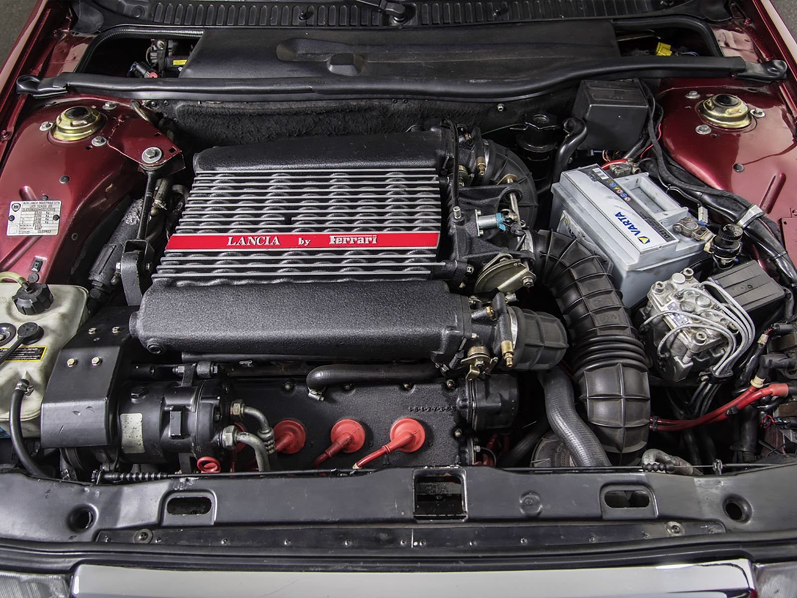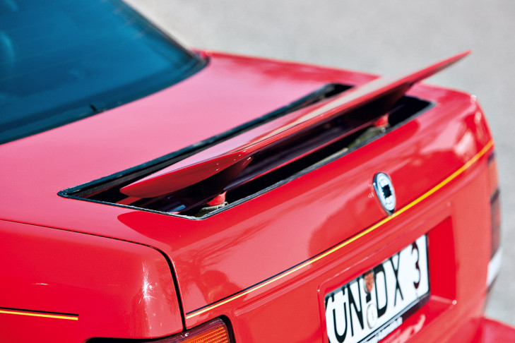 Lancia Thema 8.32 kalbinde Tipo F105L V8 kodlu Ferrari Dino motoru yer alıyor. Ferrari 308‘de kullanılan bu ünite 2.9 litrelik V8 atmosferik benzinli motor olup 6750 prm devirde 215 ps 212 beygir, 4500 prm devirde ise 285 nm tork güç üretiyor ve bu gücü 5 ileri manuel şanzımanla aktarıyordu. Aracın sedan görünümü sizi yanıltmasın. Lancia Thema 8.32, 0-100 km/s hızlanmasını 6.8 saniyede tamamlayıp 240 km/s son hıza ulaşıyordu. Bu arada ismindeki gizemi de açıklayalım. 8.32 sayılarından baştaki rakam V8 motoru, 32 ise valf değerini ifade ediyor. Fakat bu aracı özel kılan tek nokta altındaki motoru değil. Fotoğraflarda ağırlıkla yer verdiğim açılan spoyler var. Bagaj üstünde elektrikli olarak otomatik şekilde açılma olayı, ilk kez Lancia Thema 8.32‘de kullanıldı. Bu bile muazzam bir özellik.
