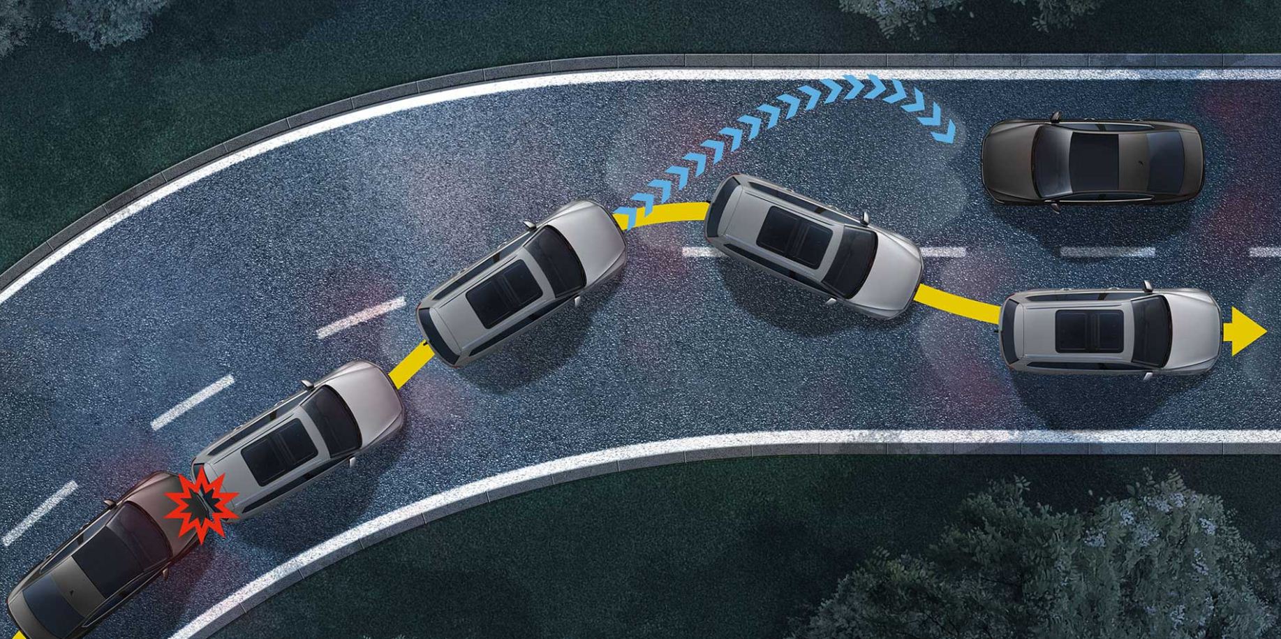 Şiddetli kaza yaşandıktan sonra devreye giren bu sistem ikinci freni kendisi yaparak aracın bir başka yere ya da araca çarpmasını engelliyor. Böylece olası diğer kazanın önüne geçilmiş oluyor.
