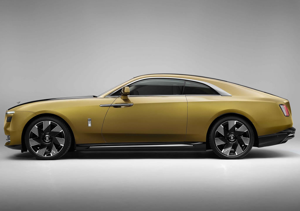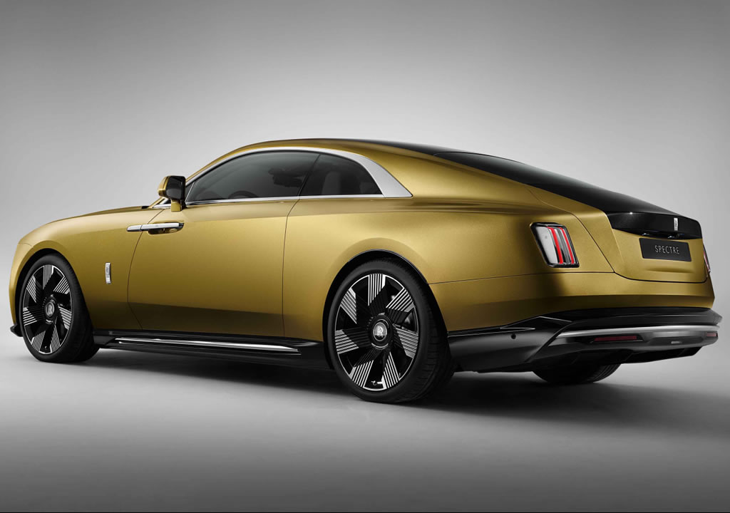 Spectre modelinde 23 inçlik jantlar kullanıldı. İnce led farlar, çift renk uygulaması ve ters açılan kapılar Rolls-Royce Spectre’nin diğer öne çıkan dış detayları arasında bulunuyor.