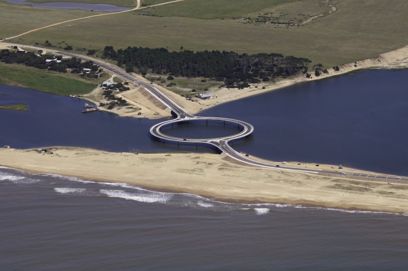 Uruguay’da faaliyete geçen Puente Laguna Garzon adlı köprü, az önce yaptığım eleştirinin tamda odağındaki yapıt oluyor. 11 milyon dolar harcanarak yapılan bu köprü hangi kafayla yapıldı diye sordum ve birazcık araştırma sonucu şu bilgiye ulaştım. Bunun tasarımcısı olan Rafael Viñoly abimiz köprü hakkındaki mantığını şöyle izah ediyor: “Puente Laguna Garzon köprüsünün konsepti geleneksel araç geçişini, araçların hızlarını düşürerek onlara panoramik manzaranın tadını çıkarmalarını sağlayacak bir etkinlik haline dönüştürmek ve ayrıca tam merkezi bir yaya alanı yapmak”.